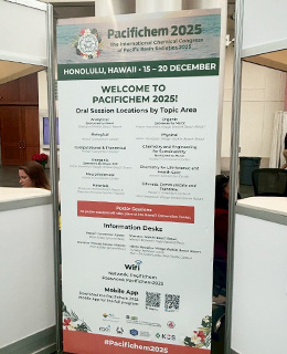 The International Chemical Congress of Pacific Basin Societies 2025 (Pacifichem 2025)は、環太平洋地域の化学系学協会が連携して開催する大規模な国際会議である。テーマは基礎化学から材料・エネルギー・環境分野まで幅広く、多くのセッションが同時並行で実施された。その結果、口頭発表・ポスター発表を通じて最新の研究成果が共有され、活発な質疑応答と人的交流が行われた。さらに、企業展示や関連ワークショップも併催され、研究成果の社会実装や装置・分析技術の最新動向に触れる機会も得られた。参加者は学生から研究機関・企業研究者まで多様であり、分野や地域を越えた交流が促進される点も本会議の特徴である。当該研究分野(光触媒)の世界的権威である堂免一成氏の特別講演が複数にわたって行われ、分野横断的な視点から課題設定や研究戦略を再考する契機となった。