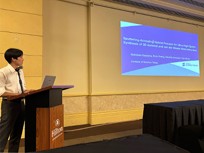 本会議にて、「Sputtering-Annealing Hybrid Process for Ultra-High-Speed Synthesis of 2D material and van der Waals Heterostructure」という講演題目で口頭発表を行いました。二次元材料の高速合成に向けた、新しい合成方法の提案という内容の発表をしました。