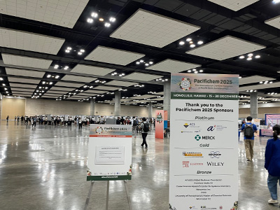 The International Chemical Congress of Pacific Basin Societies (Pacifichem)は、5年ごとに日本化学会やアメリカが各界を含む環太平洋7か国の化学会が主催して開催されている化学分野で世界最大級の国際学会である。今回のPacifichem 2025はアメリカ合衆国ハワイ州ホノルルで2025年12月15日~20日の6日間開催され、14,000人以上の研究者や学生が参加した。口頭発表はハワイコンベンションセンターを始めとする4会場で開催された。図1に申請者が発表したセッションS20のセッション会場の写真を示す。また、ポスター発表はハワイコンベンションセンターにある図2の非常に大きな会場で4日間行われた。本学会は、分析化学、生物科学、医療・生命科学・化学工学、計算科学、無機化学、有機化学、高分子化学、材料科学、物理化学、化学教育など化学およびその関連分野を網羅する多くのシンポジウムで構成されていた。研究発表な高い専門性~分野横断的研究まで幅広く発表されており、学会期間中の口頭発表やポスター発表を通して、研究者間での活発な議論が行われた。