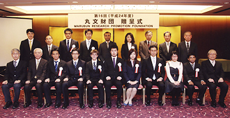 第16回となる平成24年度の助成・表彰は、「集積デバイス技術・LSIシステム」「光エレクトロニクス」「先端デバイスおよび材料」「エネルギー・環境エレクトロニクス」「バイオ・医用エレクトロニクス」のいずれかの分野に従事している研究者を対象に公募・選考し、研究業績表彰3名、交流研究助成14名の国内外研究者に対して総額2,500万円の助成金・表彰金を贈呈しました。