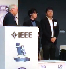 ICCEはCESと同時開催される学会のため、今回もかなり軽い雰囲気の中で行われていた。投稿した論文が最優秀論文賞に当たり、また初めて国際会議での発表なので、多少緊張していたが、英語でプレゼンテーションをして質疑応答した達成感が今回最大の収穫とも言える。また、ほかのポスター発表とオーラル発表を聞くことができ、研究に関する視野も広がった。各キーノート発表で、Consuming Electronicsに貢献をしている企業と研究機構の方々の話を聞くことも、これから社会人として働くことにとって良い勉強である。