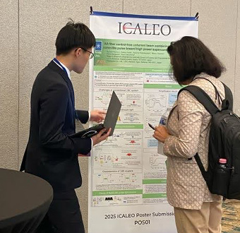 発表では、コヒーレント加算光学系における光の伝搬経路や産業分野への応用などについて質問を受け、有意義な時間を過ごした。