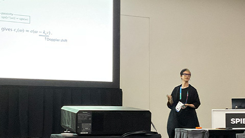 今回の国際会議で私は「光学利得を持つ系における電磁場の量子ゆらぎ」について口頭発表を行いました。電磁場の量子ゆらぎを取り扱う量子光学の理論研究は、光学利得を持たない系を取り扱うものが殆どでした。一方で、近年の物質科学では、電圧印加などによって駆動された「非平衡物質」が注目されています。この物質群は平衡状態よりもエネルギーの高い状態に駆動されているという性質ゆえに、光学利得を齎すことがあります。