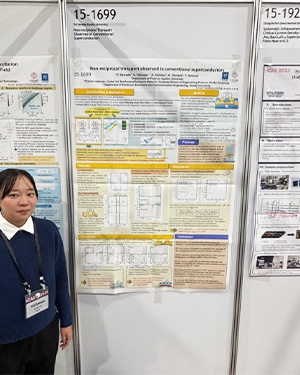 本会議においては、私は「Non-reciprocal transport observed in conventional superconductors」という題目でポスター発表を行った。発表は「Magnetism & Superconductivity in Thin Films(薄膜における磁性と超伝導)」のセクションにて行い、Nb薄膜における超伝導現象について報告した。